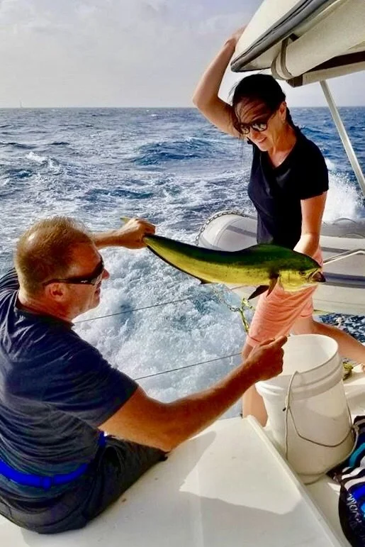 Every time we raise anchor, we put out the fishing lines for you. Our guests catch plenty of Mahi Mahi, Wahoo, King Fish, Jacks, and Tuna. Hardly anything is more exciting than reeling in a big blue-water sport fish! Of course we clean, prepare and cook all your catches for you.